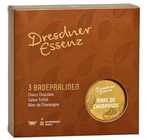 3x Badepralinen assortiert (Marc de Champagne, Cherry Chocolate, Sahne Trüffel)