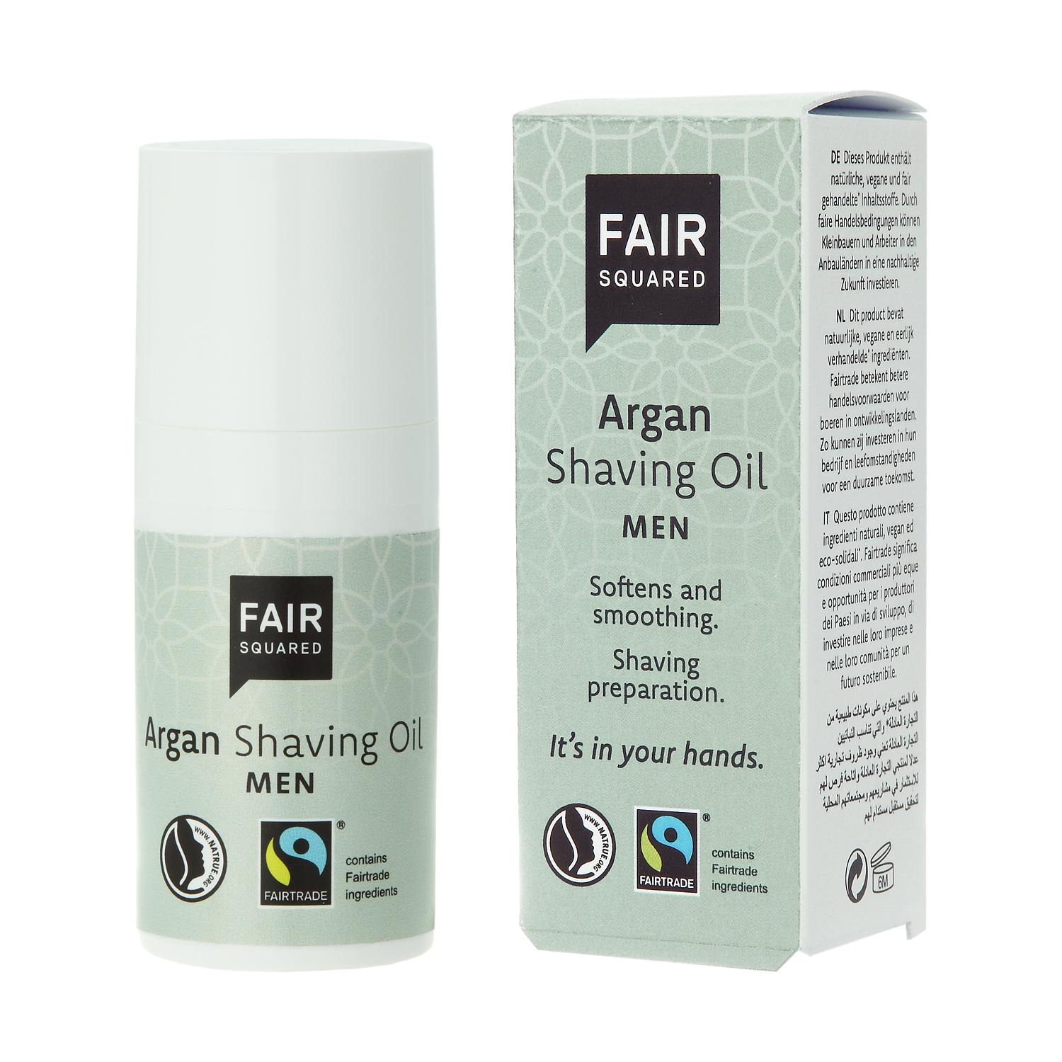 FAIR SQUARED Shaving Oil ist die perfekte Vorbereitung für Gesichtsoder Körperrasur. Mit fair gehandelten, natürlichen und biozertifizierten Inhaltsstoffen. Vermeidet Hautreizungen und Pickel.